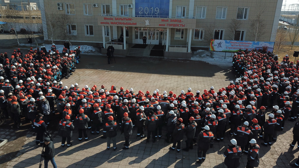 Около тысячи металлургов алюминиевого и электролизного завода собрались возле здания АО "КЭЗ". В поддержку нового названия столицы – Нур-Султан – звучали песни из репертуара звезд отечественной эстрады.