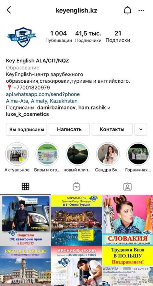 Более активно выглядит страница Key English в Instagram. Аккаунт имеет более 40 тысяч подписчиков, более тысячи публикаций. В описании аккаунта Key English - это центр зарубежного образования, стажировки, туризма и английского языка.