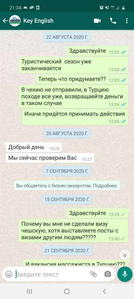 Мы направили официальный запрос в образовательный центр Key English, также звонили по номерам, указанным на сайте. С нами связалась одна из представителей организации, которая согласилась дать комментарий по телефону. Но она отказалась, чтобы ее имя и фамилию называли в материале, попросила назвать ее представителем компании. По ее словам, люди, которые пожаловались в правоохранительные органы на Key Engish, сами должны деньги образовательному центру.Многие, по ее словам, узнав, что все необходимые документы для посольства образовательный центр получил от работодателя, пытаются уклониться от оплаты оставшихся денег."Большинство этих людей являются по договору должниками нашей организации. Они не оплатили всю стоимость, которую должны были. Но ссылаются на то, что мы мошенники. Мы сделали поэтапную оплату наших услуг для того, чтобы клиентам было легче и они не платили всю сумму сразу. Но бывает так, что пока мы готовим документы человек передумывает лететь, или у него нет денег, чтобы заплатить оставшуюся часть. Они приходят и говорят: "Возвращайте мои деньги". Они же не уехали, передумали, и им кажется, что первоначальную сумму потратили на ветер. Но в договоре написано, что если человек по собственному желанию отказывается, то эти деньги не возвращаются. Они хотят вернуть сумму, которая по договору невозвратная. Это они нам должны, потому что кандидат должен довести до конца свое участие в программе. Если отказ по визе, мы переоформляем на другую программу. Но это не значит, что клиент имеет право самостоятельно просто так отказаться. Еще и не оплатив полную сумму - запрашивать невозвратную часть" - сказала представитель Key English.