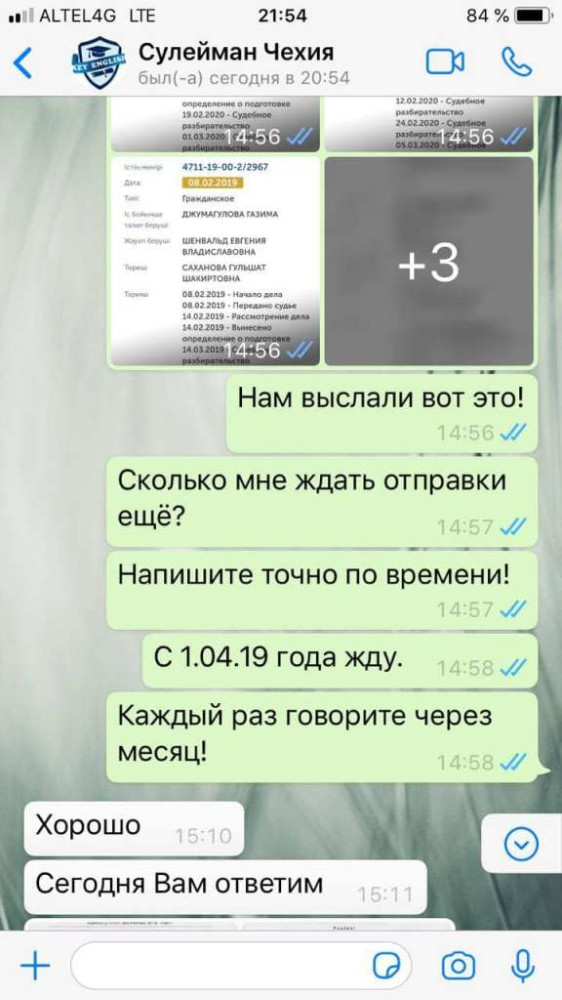В судебном кабинете мы нашли семь разбирательств с участием ИП "Джумагулова Газима" за 2018 год, 16 - за 2019, восемь - за 2020 год. Большинство из них являются следствием исков клиентов Key English, в том числе коллективных. Кто-то не уехал на работу или на стажировку за границу и требовал свои деньги назад. Кому-то суд отказывал в исках, мотивируя это тем, что ответчик выполнил свои обязательства - по информационно-консультационному сопровождению. А кому-то все-таки удавалось убедить суд, и их иски были частично или полностью удовлетворены.