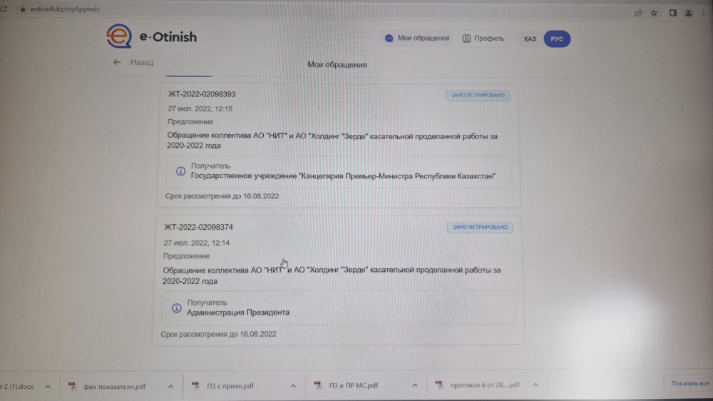 Работники холдинга "Зерде" вновь пожаловались президенту и премьер-министру