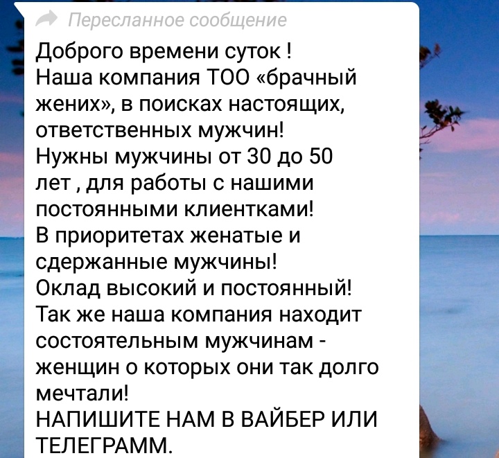 В мессенджерах активно распространяется объявление о работе строго для мужчин. Текст гласит следующее: