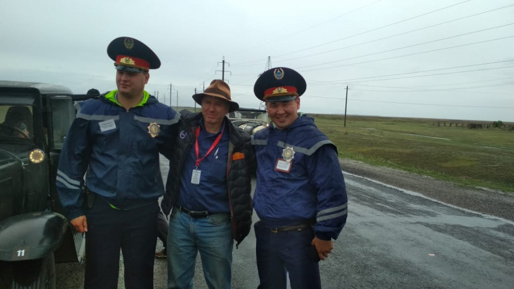 К тому же у гражданина Новой Зеландии сломался автомобиль. На место поломки по поручению начальника полиции Щербактинского района подполковника Елдоса Нургалиева незамедлительно прибыли патрульные полицейские Арман Абдугалиев и Василий Шкретов. Поломка оказалась серьезной - был пробит радиатор. Полицейские погрузили ретроавто на эвакуатор, любезно предоставленный директором ТОО "Артур" Леонидом Вольфом, и сопроводили машину до Павлодара.