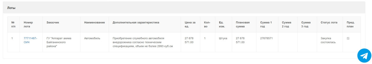 В Актюбинской области для акимата Байганинского района приобрели внедорожник стоимостью 27 678 571 тенге. Информация об этом появилась на портале государственных закупок, передаёт BaigeNews.kz.