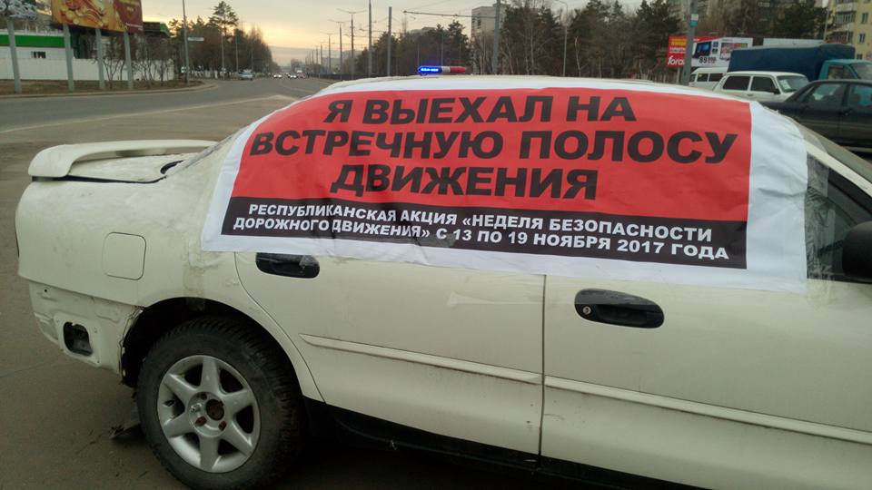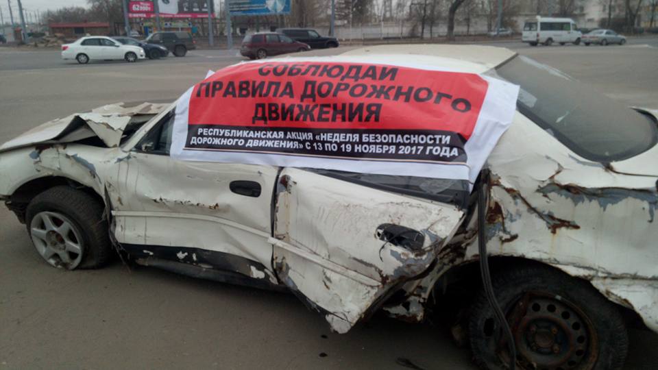 В Интернете пользователи социальных сетей активно распространяют фотографии с необычной акции, проведенной сотрудниками местной полицейской службы. На аварийных участках Павлодара и трассах республиканского значения выставлены машины, пострадавшие в ДТП.