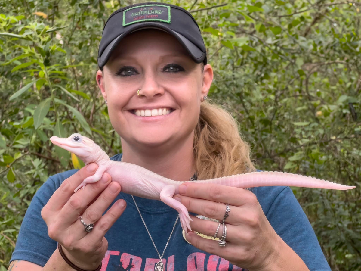 Тематический парк Gatorland в Орландо, где живёт семья аллигаторов, теперь просит публику помочь с именем малышки длиной 49 см. По словам представителей парка, таких белых аллигаторов с лейкизмом в мире всего семь.
