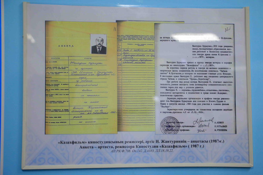 Выставка «Из истории кинематографа Казахстана» насчитывает более 50 экспонатов. Среди них раритетные материалы, рассказывающие о первых шагах отечественного кинематографа, о деятельности киностудий, стенограммы заседаний, обращения киноработников, документы о создании и развитии сети кинопрокатов, об организации работ по дубляжу, сценарии фильмов и многочисленные рецензии на них.
