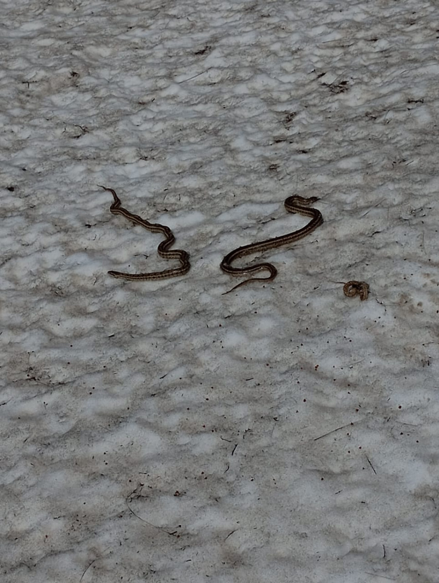 Весна в национальном парке "Тарбагатай" преподнесла редкое явление - змей, ползущих по снегу. Рептилии раньше обычного пробудились после зимней спячки, передаёт BaigeNews.kz.