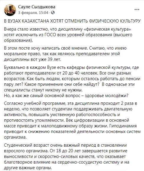 Приказа об отмене физической культуры из учебной программы вузов нет, передает BaigeNews.kz.