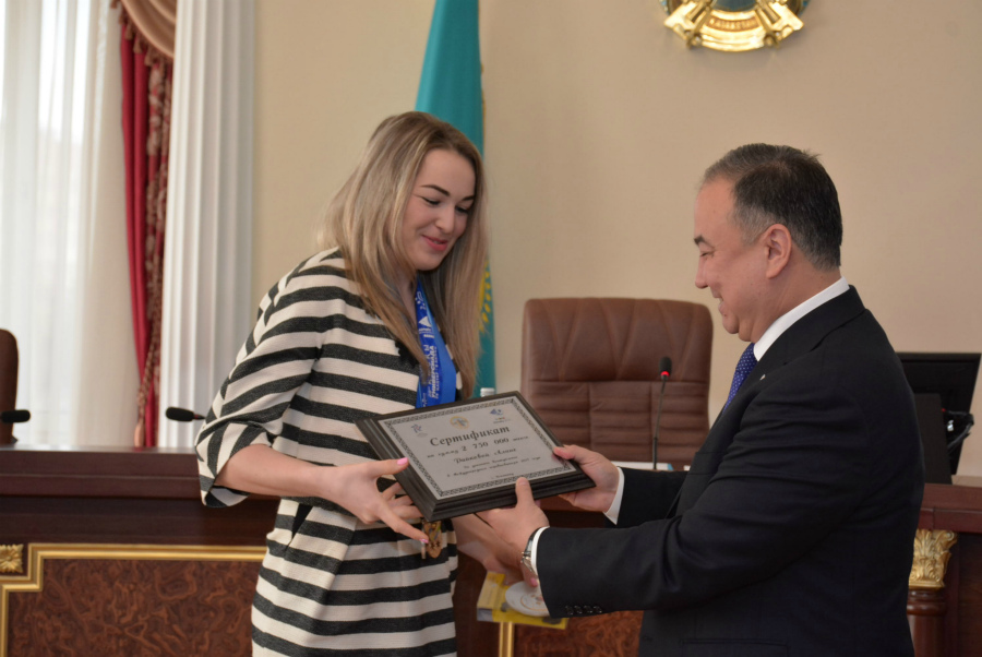 Аким, поблагодарив спортсменов и тренерский состав за высокие достижения, вручил им денежные премии. Их обладателями стали чемпион 28-й Всемирной зимней Универсиады, серебряный и бронзовый призер 8-х зимних Азиатских игр Алина Райкова, чемпион и серебряный призер Универсиады Олжас Климин, бронзовый призер Универсиады и Чемпионата Мира среди юниоров Роман Еремин, серебряный призер Азиатских игр Анна Кистанова, серебряный призер Универсиады Ольга Мандрика, серебряный и бронзовый призер Азиатских игр Николай Чеботько и их тренеры Сергей Райков, Татьяна Сергеева, Геннадий Макаров, Сауле Мухина, Виктор Васильев, Николай Александров.