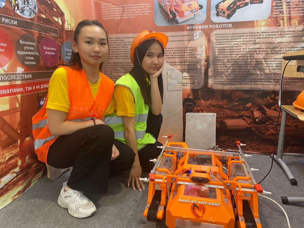 Инкар Курманбаева и Жания Жуматай, ученицы Назарбаев Интеллектуальной школы Талдыкоргана разработали робота Saver, который может искать пострадавших людей под завалами, оказывать первую необходимую помощь, связываться со специалистами через рацию и тушить огонь.