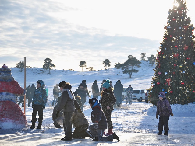 Представительство включает в себя юрты, каток, снежную горку и зону с ездовыми собаками.