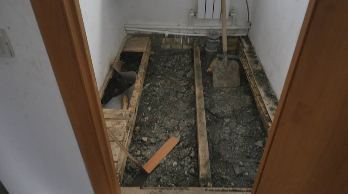 "Два года почти прожили здесь, перезимовали и пол сгнил, почти нет его. Вскрыли пол, пустой был, ничего не было, внизу просто земля. Из - за этого холодный был дом и батареи пластиковые поставили тоже, они жару не дают, железные должны быть здесь по проекту, печка тоже не такая, ни для этого дома. Сырость постоянная, уже болели с сыном, почти месяц, всё из-за сырости. Жить здесь невозможно. Холодно было, обогреватель поставили, в одной комнате в общем жили и всё, некачественный дом. Конечно, задумываемся переехать обратно, если ничего не изменится", - рассказал житель с.Чапаево Сапарбек Абукенов.