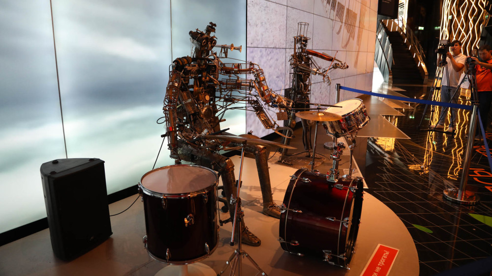Он также рассказал о музыкальной группе роботов от художника Александра Гецой – "Уличные музыканты", в составе которой скрипач, барабанщик и шляпник. Уникальность этих экспонатов в том, что они были собраны из отходов и выброшенного мусора.