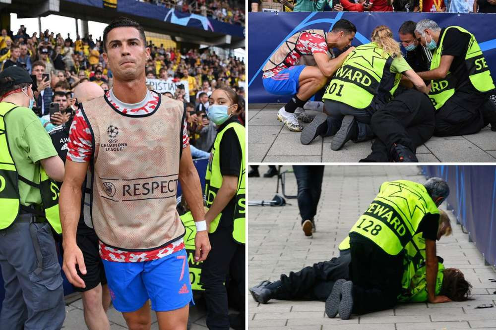 По словам зрителей, перед началом игры Роналду отрабатывал удары по воротам. При одном из них мяч попал в голову девушке-стюарду и сбил ее с ног.