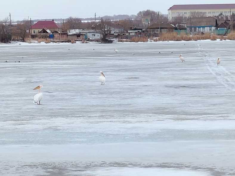 Крупные птицы сразу же привлекли внимание жителей райцентра. Они практически неподвижно стоят на льду озера в окружении десятков чаек. Возможно, стая возвращается с Африканского континента, где провела зимовку. Безусловно, им нужно набраться сил, чтобы сделать ещё один рывок к родным местам, где их на законодательном уровне охраняют. Их точка назначения — Наурзумский заповедник, где они будут гнездиться, а как выведут потомство, вновь полетят в тёплые широты.