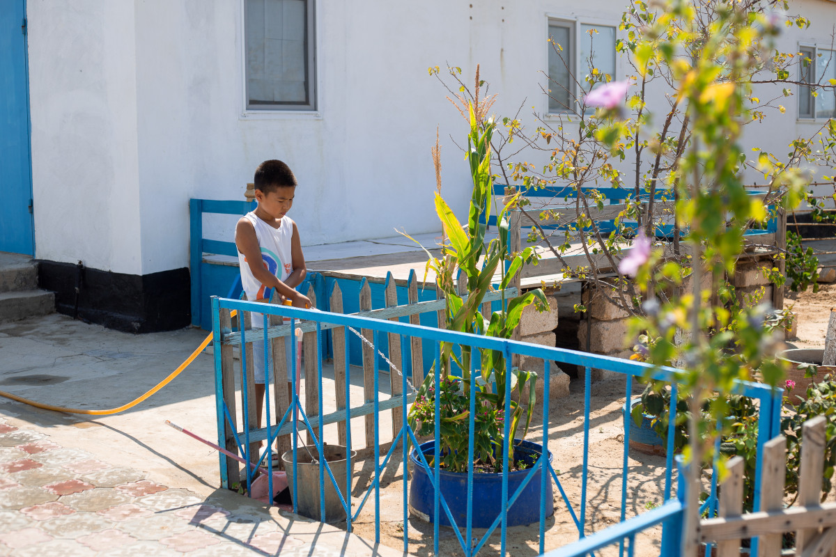 Одна из тех, кто получил доступ к питьевой воде через центральный колодец Талшын Максуткызы, бабушка Бекзата. Сегодня они вместе ухаживают за своим садом, и деревья начали давать плоды.