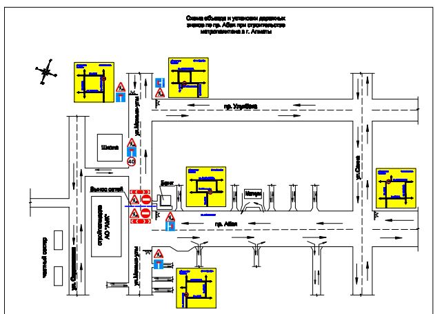 На пересечении пр. Абая – ул. Момышулы в схему движения автотранспорта на данном участке будут внесены временные изменения в связи со строительством станции «Достык» метрополитена.
