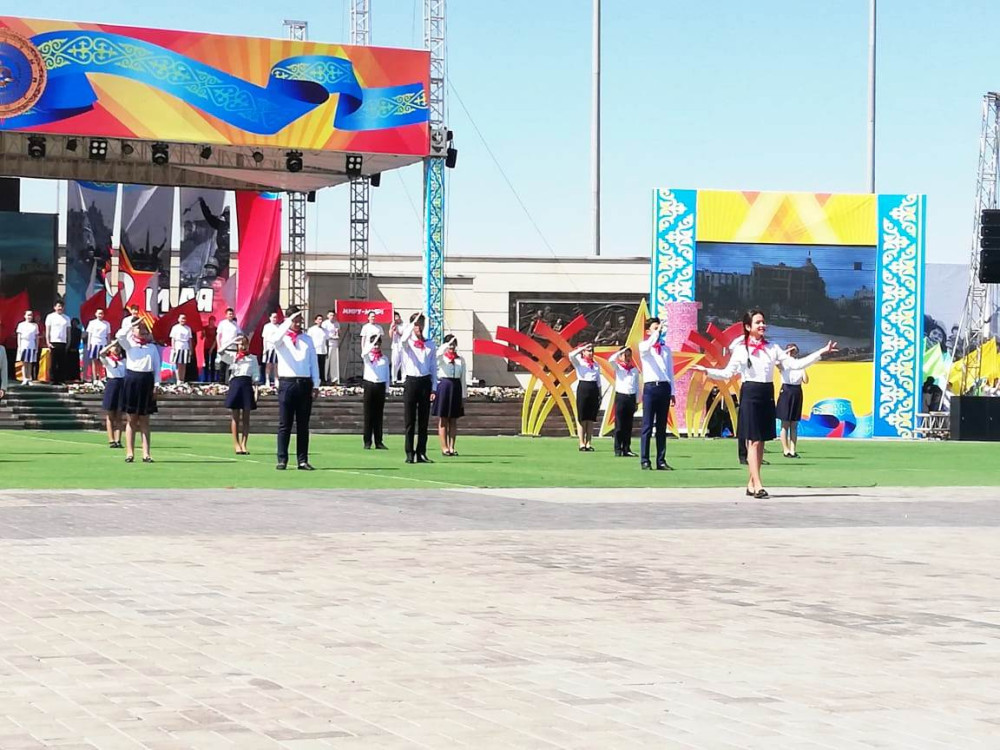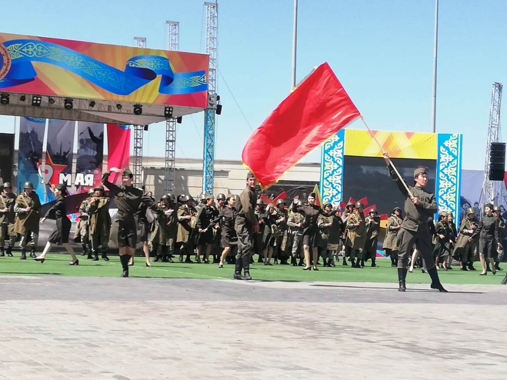Особый интерес вызвало красочное театрализованное представление "Ұрпақтар ұмытпайтын - Ұлы жеңіс", представленное силами артистов драматического театра имени Бикен Римовой и других местных творческих коллективов. Постановка повествовала о разных периодах Великой Отечественной войны и завершилась всеобщим исполнением легендарной песни "День Победы".