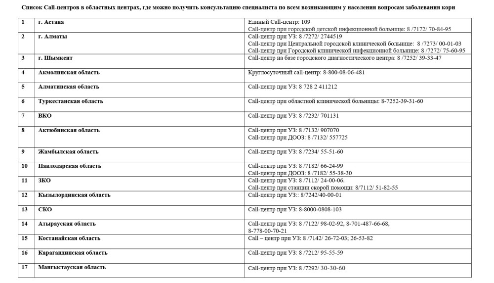 Между тем, ответы на свои вопросы по поводу кори североказахстанцы могут получить в Call-центре по номеру 8-8000-0808-103. Такие сервисы открыты по всей республике. В них в круглосуточном режиме работают врачи, которые отвечают на все вопросы населения и дают консультацию по профилактике заболевания.