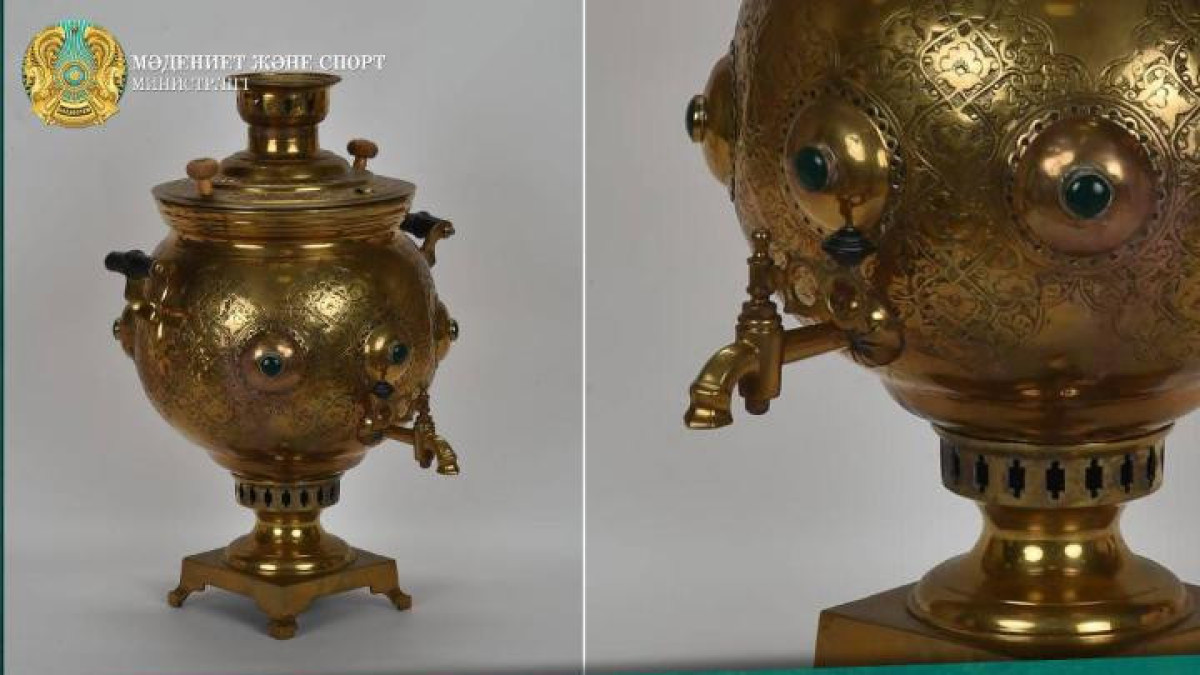 "Созданный в 1893 году экспонат высокой исторической ценности вручён от имени Международного фонда поддержки культуры и искусства имени Абая. Это самовар с постоялого двора мецената Бекбая Баисова в Семее, где пили чай казахские интеллектуалы во главе с Абаем Кунанбайулы", - сообщили в Минкультуры.