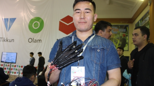"Мы сделали "умный браслет" и "умную перчатку". Браслет называется "хелпер", а перчатка – "глов си плюс". Наш нидноуэр, с которым мы работали, не может слышать и говорить. Главные его проблемы: не слышит дверной звонок, сигналы машин, трамваев. Для павлодарца это очень проблематично. Кроме того, он не может вызвать скорую помощь, полицию, пожарных. Мы в браслете сделали три SOS-кнопки. Когда он, например, вызывает полицию, то оправляется три автоматических сообщения: одно – родным, второе – социальному работнику, а третье – в полицию", - рассказал докторант второго курса КазНУ им. Аль –Фараби Аскар Аскеров.