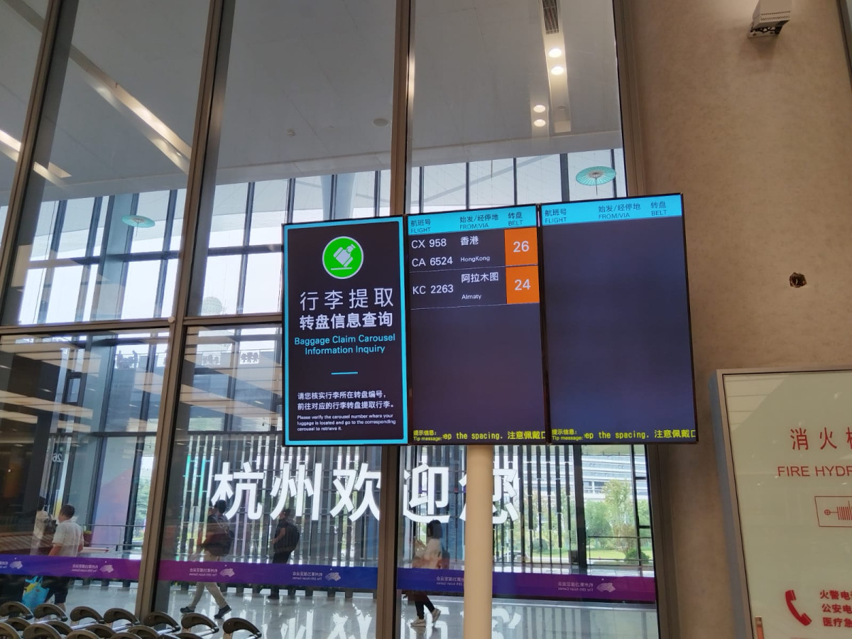 Впрочем, вдохнуть воздух Ханчжоу члены казахстанской делегации смогли не сразу – после приземления самолет еще 10 минут ехал по летному полю до терминала. В самом аэропорту делегацию уже ждали волонтёры Азиады с табличками с надписью "Казахстан". Далее следовало прохождение паспортного контроля и получение багажа.