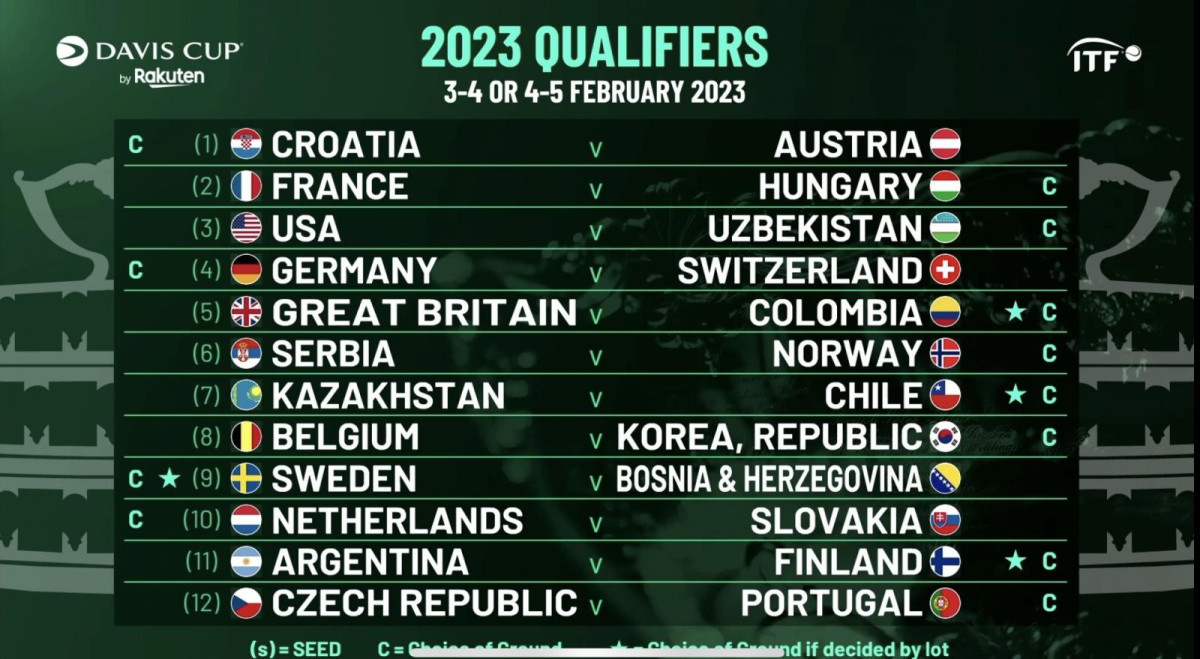 12 победивших команд примут участие в финальной части турнира. Там они присоединятся к двум финалистам Кубка Дэвиса-2022: Канаде и Австралии, а также к двум сборным, получившим wild card: Италии и Испании.