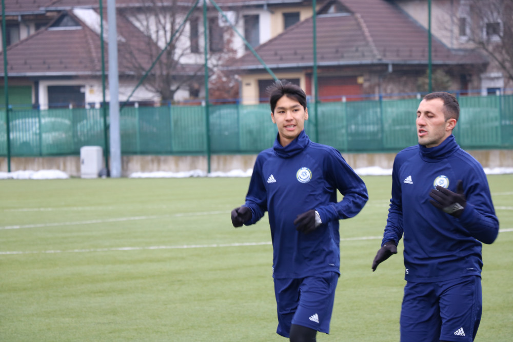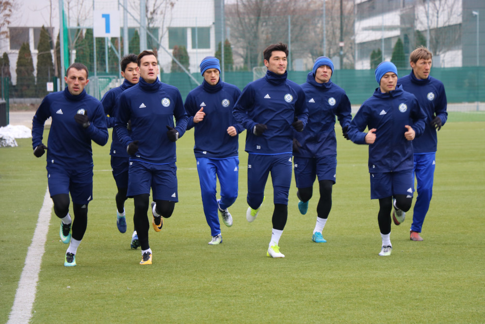 Молодые таланты Сейдахмет и Зайнутдинов отрабатывали пасы друг с другом. Видимо ребята вспомнили славные времена, проведенные в одной команде в Таразе.