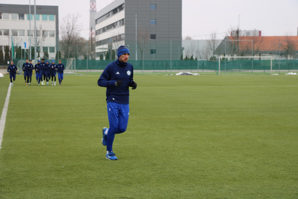 Дмитрий Шомко занимался по отдельной программе, наматывая круги вокруг стадиона, в то время как остальная команда под руководством Цанко Цветаева, помощника главного тренера, приступила к разминке.