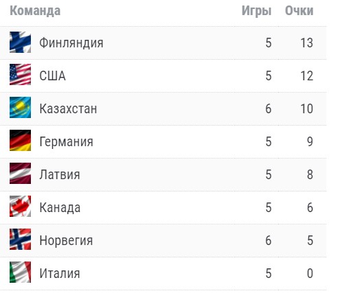 Сначала сборная США со счетом 2:1 обыграла команду Норвегии, а затем Финляндия победила Германию – тоже со счетом 2:1. Таким образом, сборная Казахстана после этих двух матчей соперников опустилась на третье место в таблице.