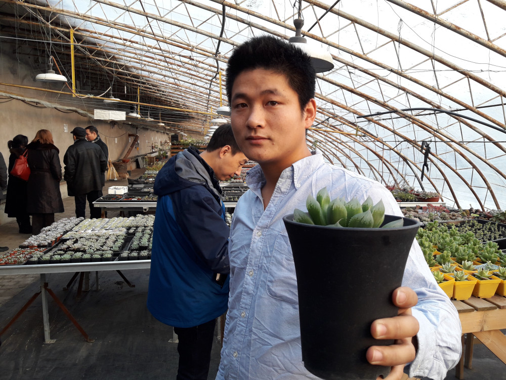 В его теплице выращивают более 350 видов растений из разных стран. Такие растения в горшочках стоят около 50 юань.