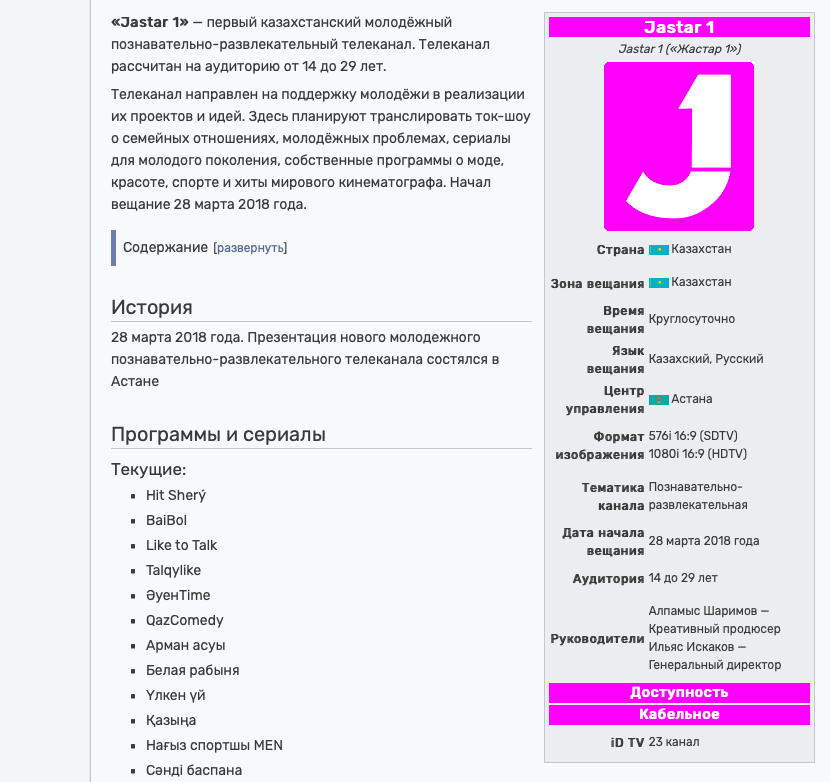 Интересно, что руководителем телеканала является глава той самой компании ТОО "Независимый продюсерский центр "КАЗтелефильм" Искаков Ильяс Башарович - журналист, ранее занимавший кресла президента АО "Казахтелефильм", директора АО РТРК "Казахстан" и депутата Жамбылского областного маслихата.