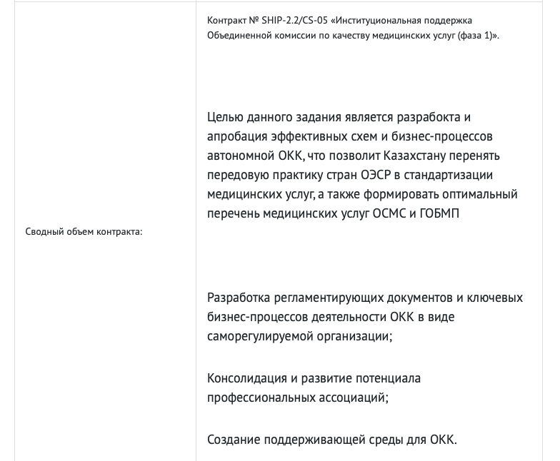 За поддержку Объединенной комиссии по качеству медицинских услуг Минздрав заплатил канадскому университету International Health unit (IHU) of the School of Public Health of Montreal University 448 676,65 доллара в надежде, что это позволило бы Казахстану перенять практику передовых стран для ОСМС.