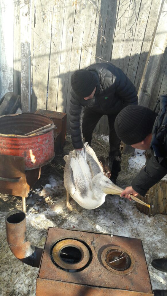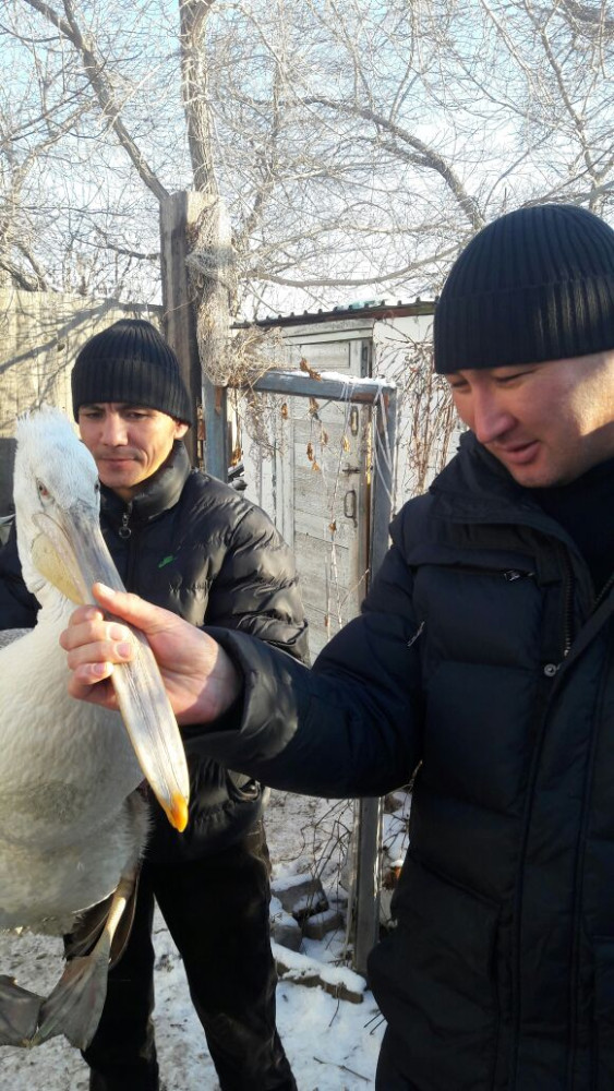 «Птица была очень ослаблена. Ветврачи района предположили, что молодняк отбился от сородичей и не смог самостоятельно добыть себе пропитание. Пеликана приютила династия егерей, где много поколений мужчины работают в лесу. Птицу назвали Гошей и поселили в бане. Когда пернатый смог уже самостоятельно кушать рыбу, которую специально для него приносили рыбаки, выходить по-тихоньку из бани и гулять по двору, мы связались с Карагандинским государственным зоологическим парком и вот за нашим Гошей приехали», - рассказал Юрий Гричушкин.