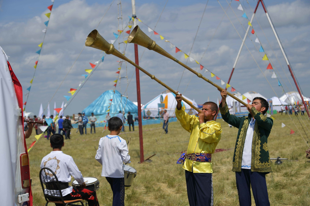 В этноаул, где проходили народные гуляния в честь юбилея великого казахского акына, канатоходцы попали случайно. По словам руководителя группы Шамшидина Хожиматова, после гастролей в Карагандинской области они прибыли в Экибастуз, где им и предложили выступить на празднике. Гости по достоинству оценили шоу, одним из участников которого стала пятилетняя девочка.