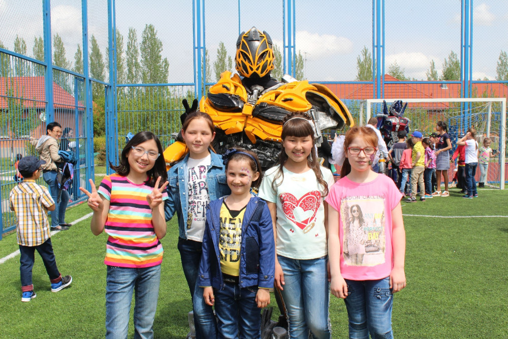 К празднику в Детской деревне присоединились популярные артисты Айкын Толепберген, Бейбут Кушкалиев, Камшат Жолдыбаева, Макс Барских, Сергей Лазарев и Елена Темникова. Толепберген, Барских и Лазерев прокатились на велосипедах вместе с детьми по территории деревни. На летней площадке ребята побеседовали со своими кумирами, фотографировались и спели вместе. Гости поздравили ребят с праздником и пожелали успехов.
