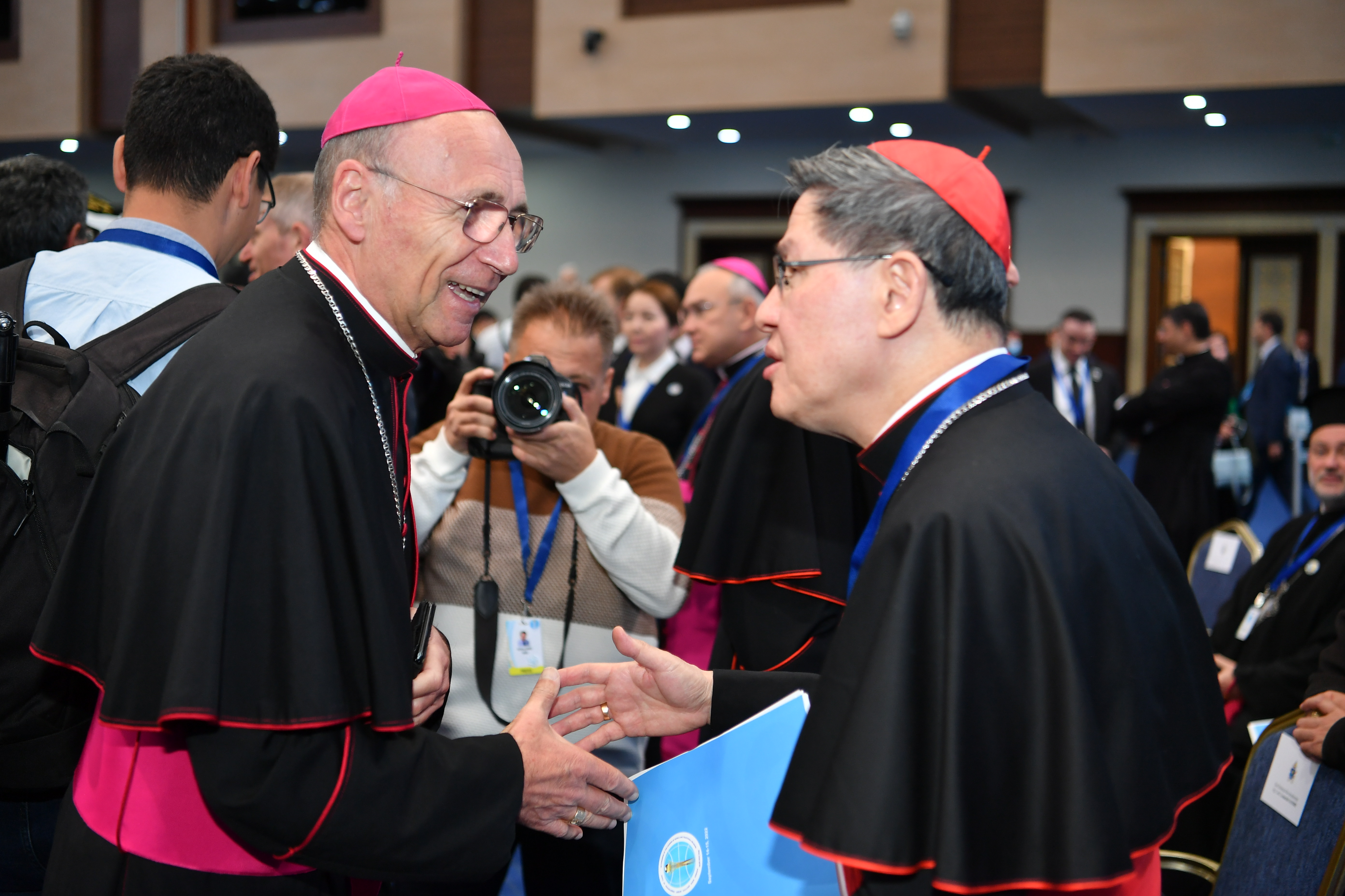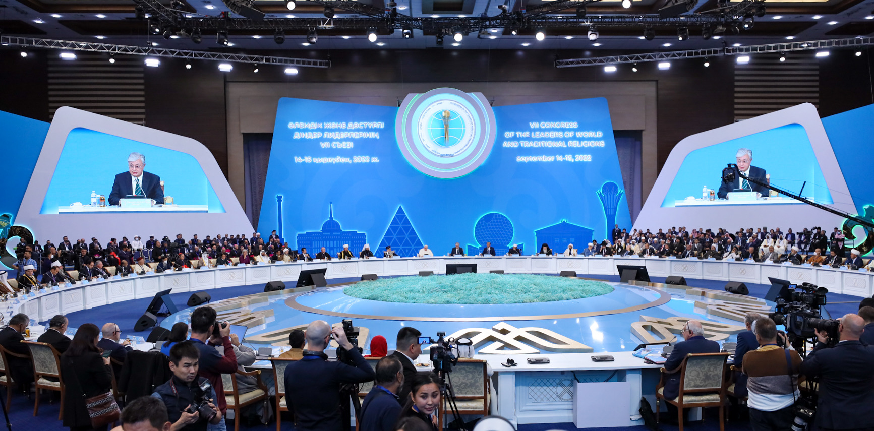 Лидеры собрались во Дворце Независимости. Это первое крупное международное мероприятие, которое Казахстан проводит с момента начала пандемии. Основная тема съезда — "Роль лидеров мировых и традиционных религий в духовном и социальном развитии человечества в постпандемический период".