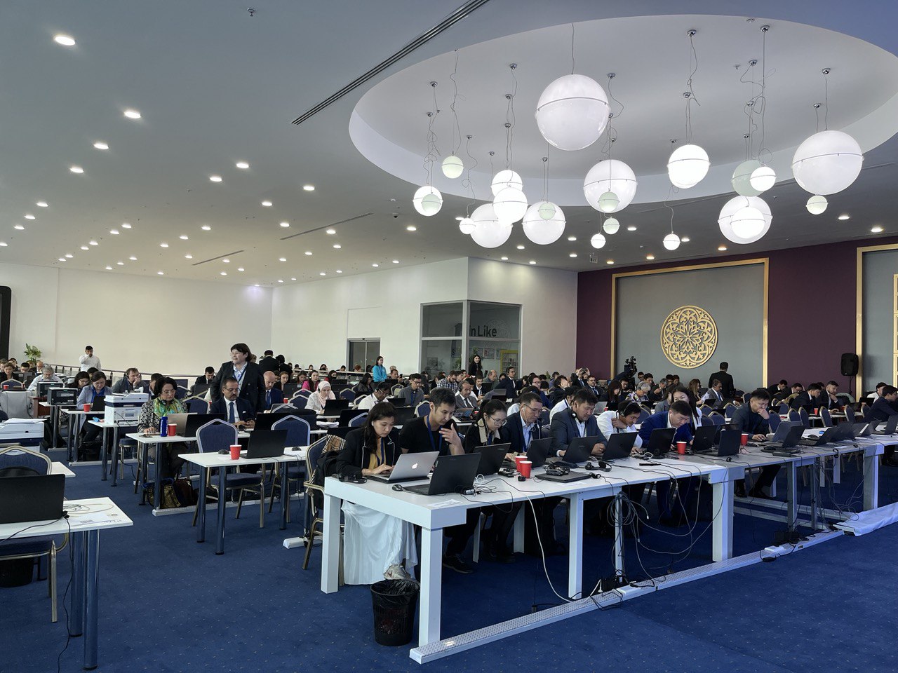 В пресс-центре Дворца Независимости практически не было места. Представители СМИ приехали за два часа до начала мероприятия. Трансляция выступлений спикеров велась на шести языках.