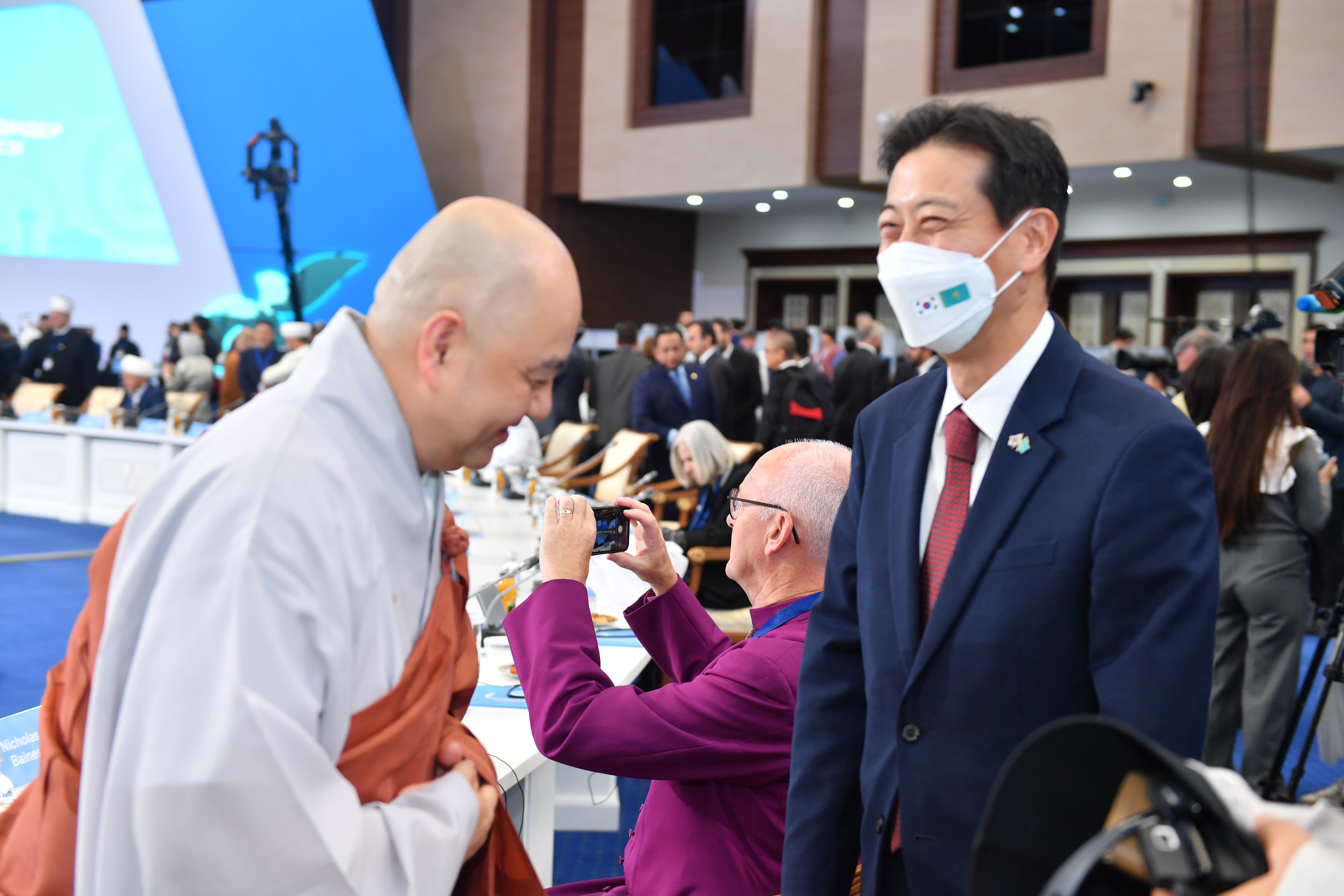 В 11:45 был небольшой перерыв. Журналисты могли взять интервью и поговорить с участниками. Делегаты съезда обменивались мнениями о мероприятии и делились впечатлениями о поездке в Нур-Султан.