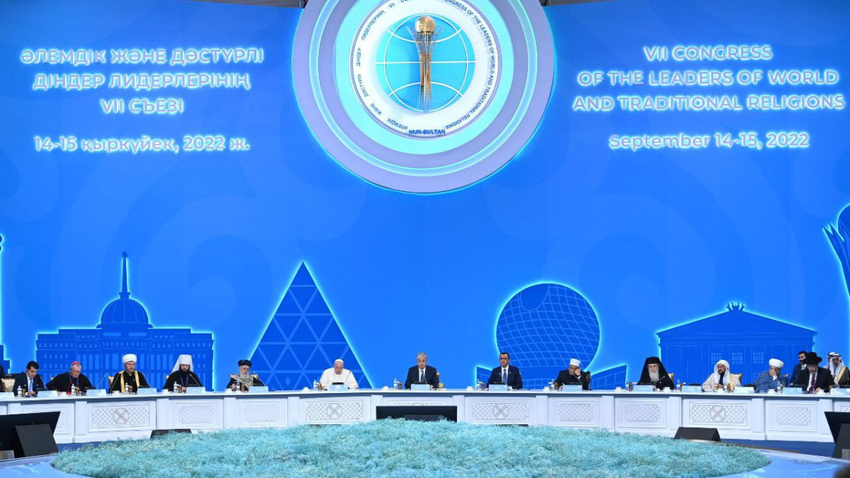 Лидеры собрались во Дворце Независимости. Это первое крупное международное мероприятие, которое Казахстан проводит с момента начала пандемии. Основная тема съезда — "Роль лидеров мировых и традиционных религий в духовном и социальном развитии человечества в постпандемический период".