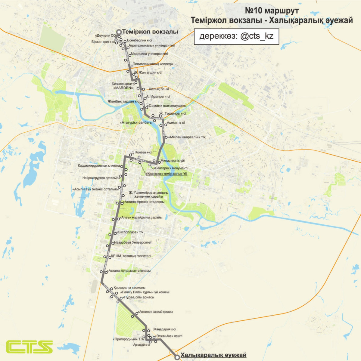 C 29 июня в Астане изменят схему движения маршрута №10 в направлении аэропорта. Об этом сообщили в компании CTS, передаёт BaigeNews.kz.