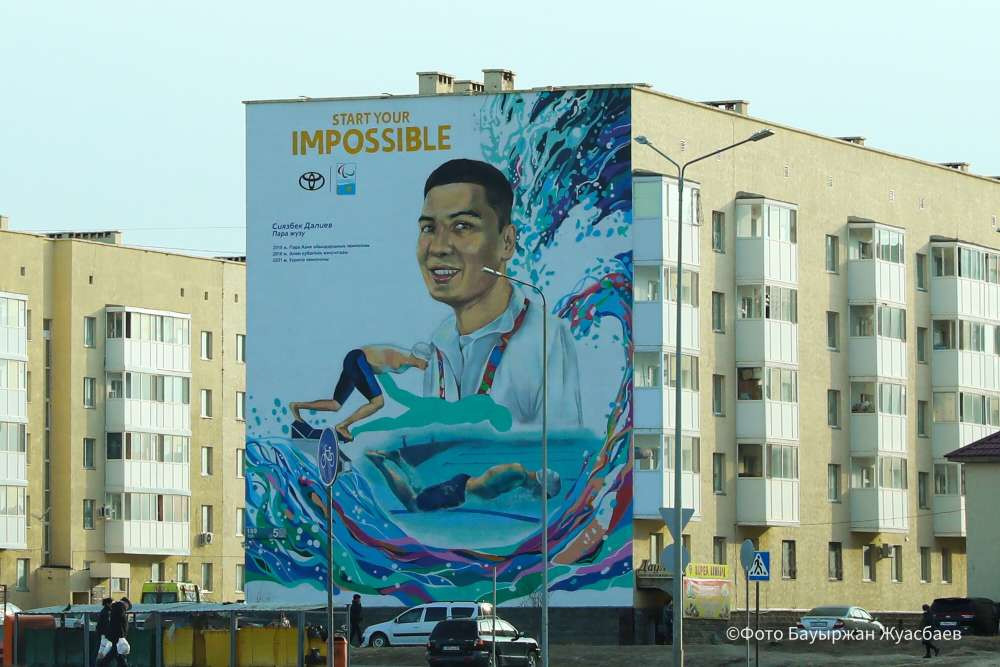 Есть в Нур-Султане мурал, посвященный спортсмену, пловцу Сиязбеку Далиеву. Рисунок находится по адресу: район Сарыарка, улица 189, дом 5. Его авторы - супруги Айбек и Аяулым Нурбековы.