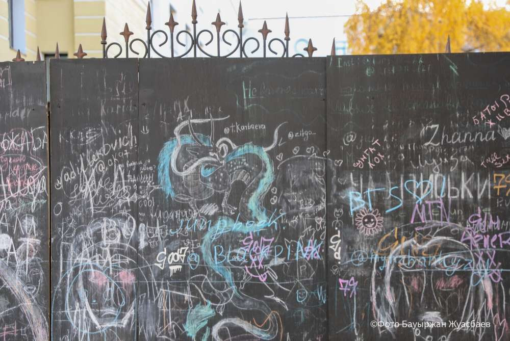 "Никто не хотел по началу на ней рисовать. Потом мы сами начали. А дальше уже жители начали дорисовывать, писать что-то", - отмечает Базыкен.