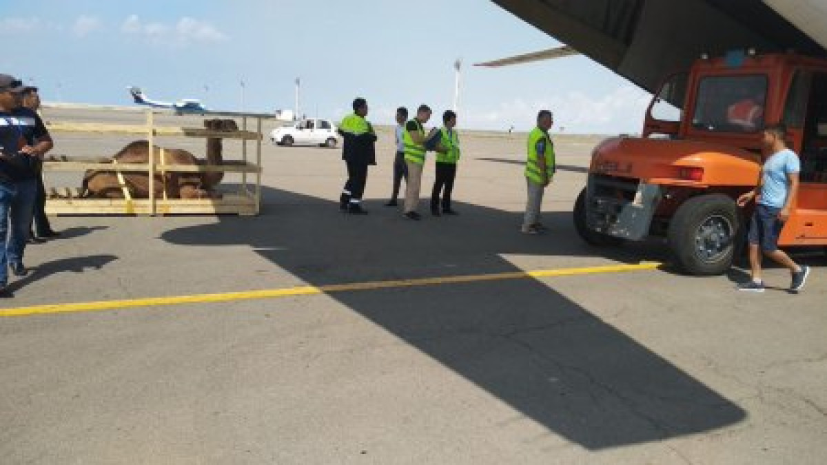 Работники аэропорта подготовили, произвели загрузку и отправили пять самок и одного самца верблюда для киносъемок в Грузию, пишет