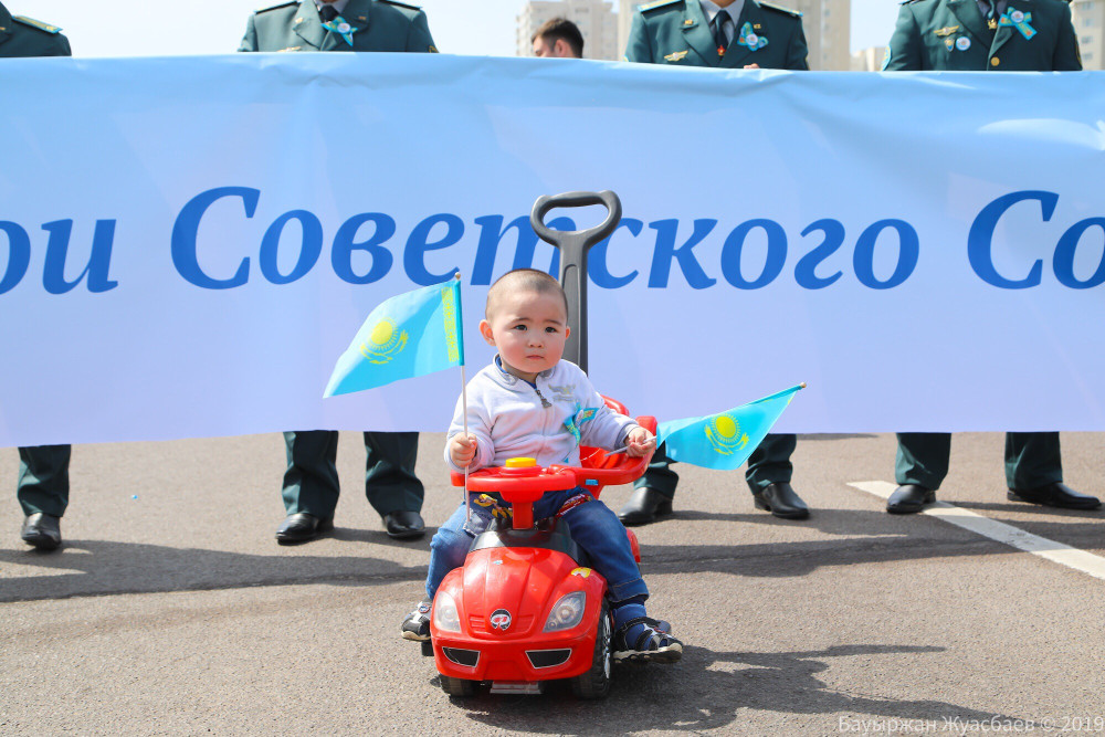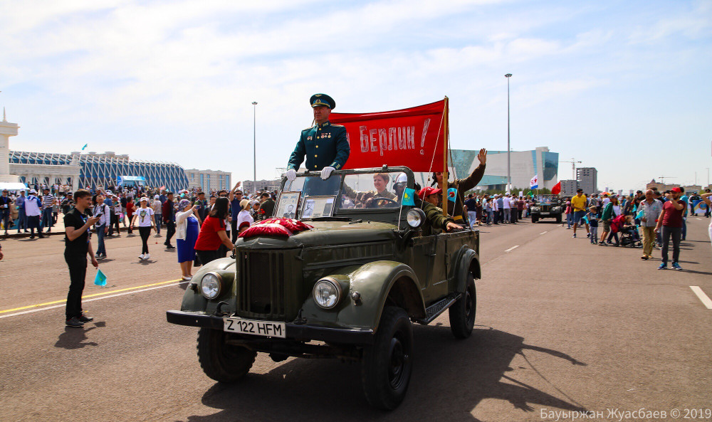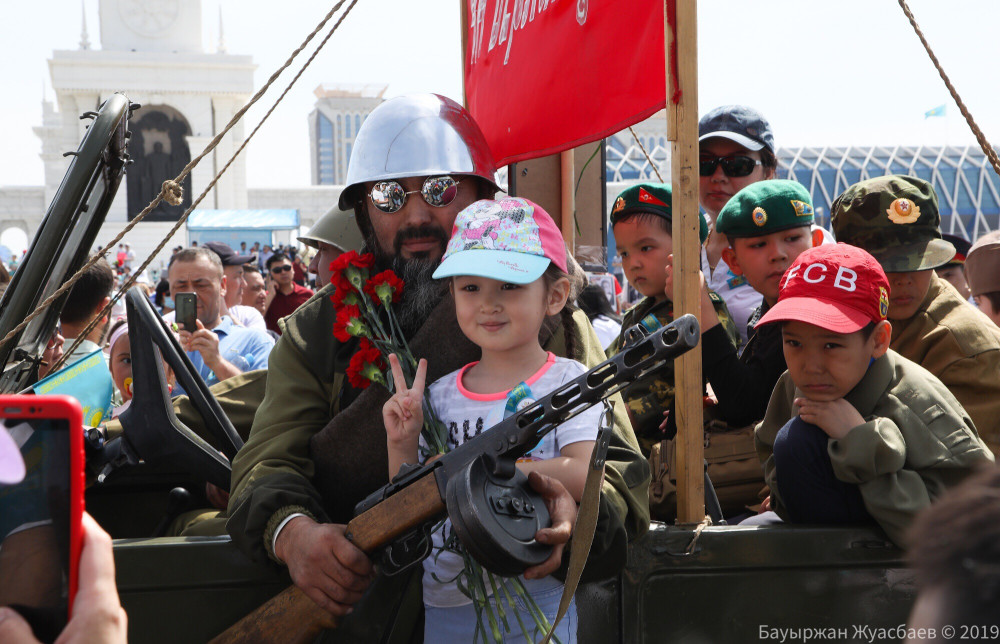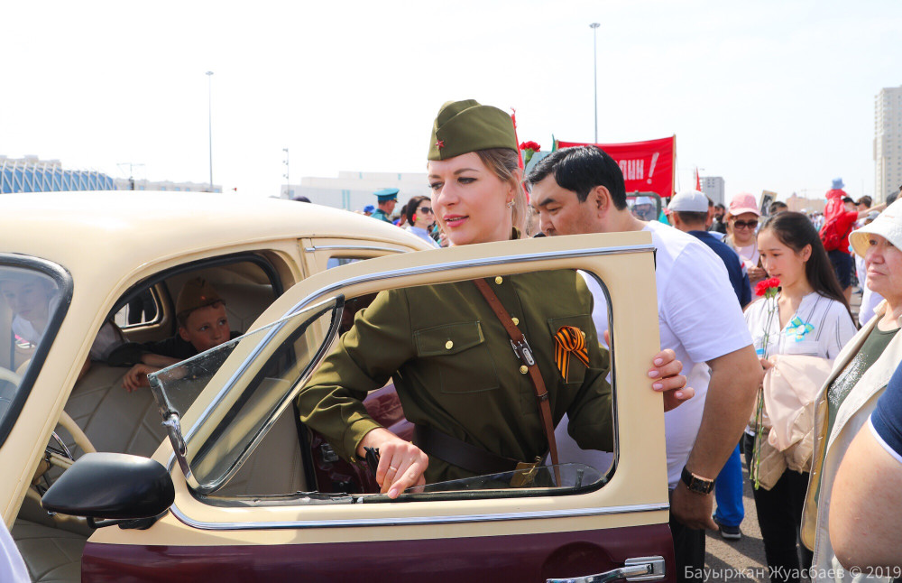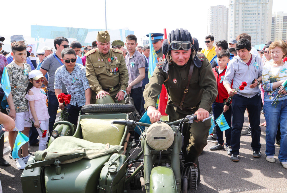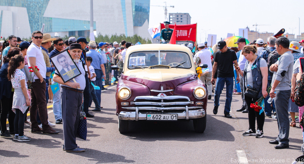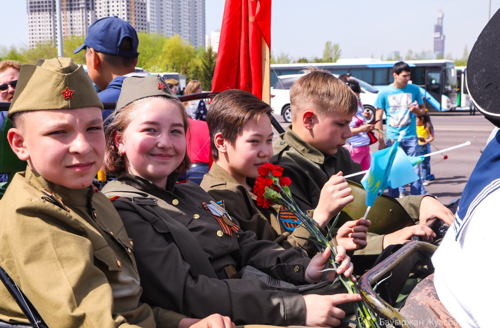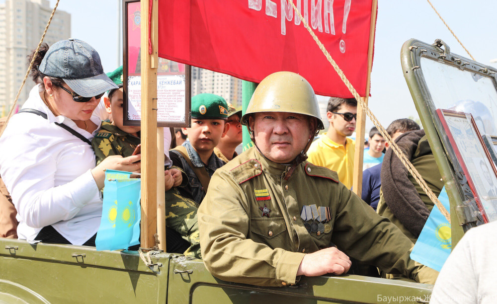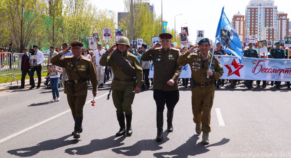 Шествие "Жаужүрек полк" проходит в Нур-Султане в честь празднования Дня Победы