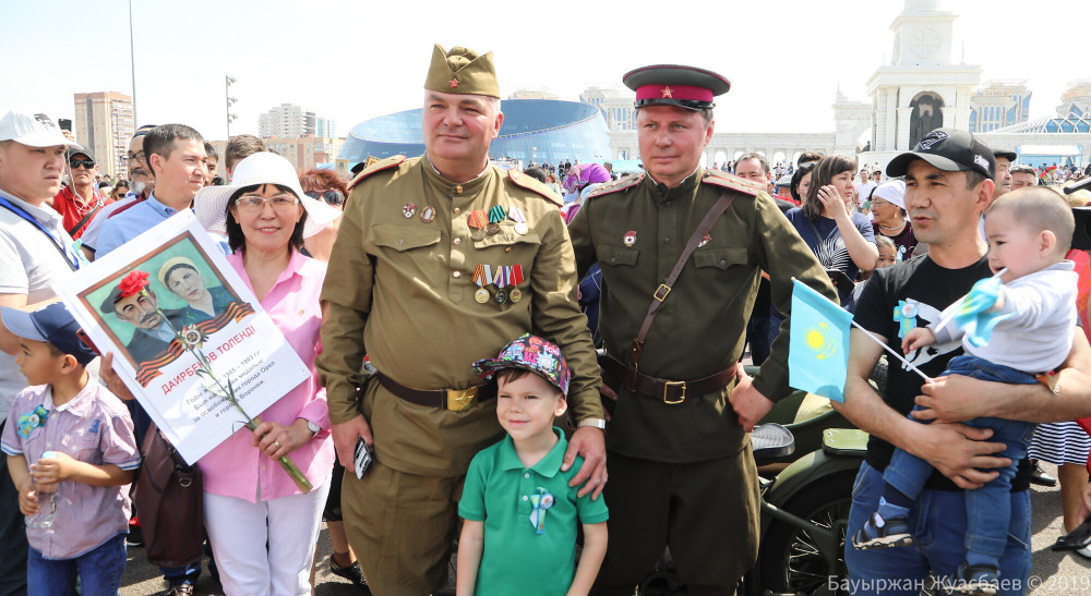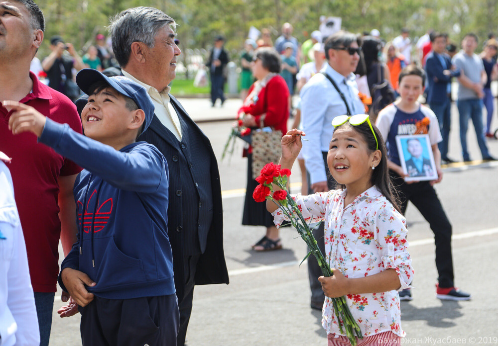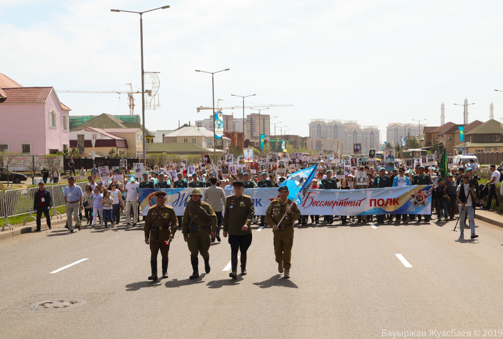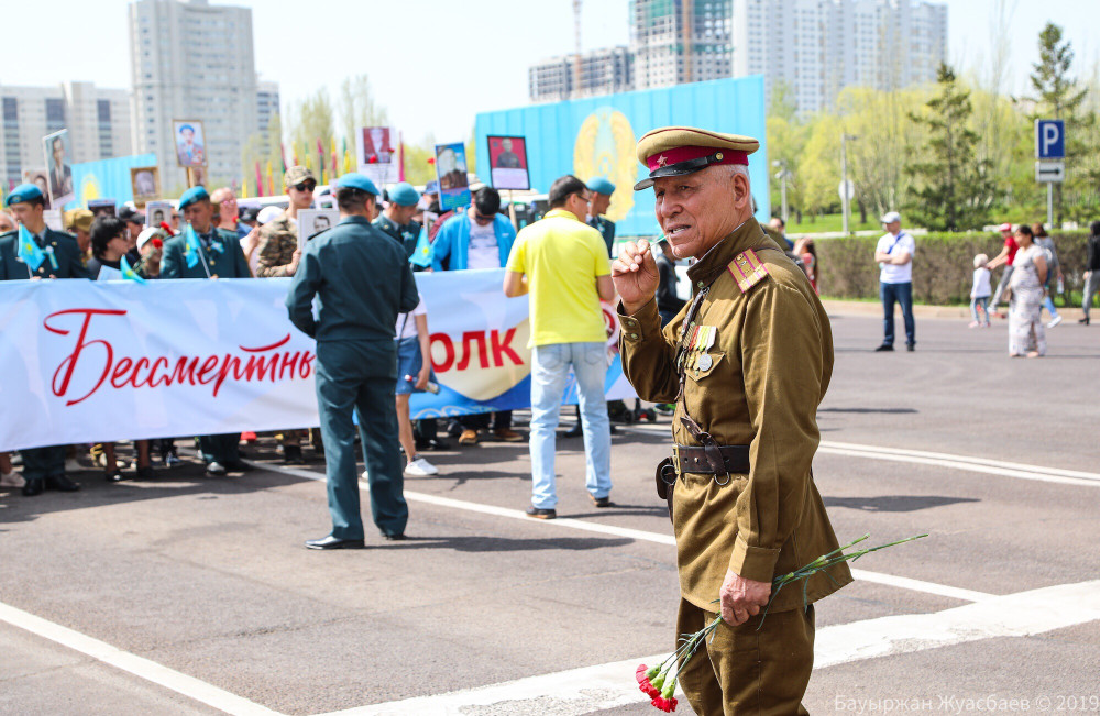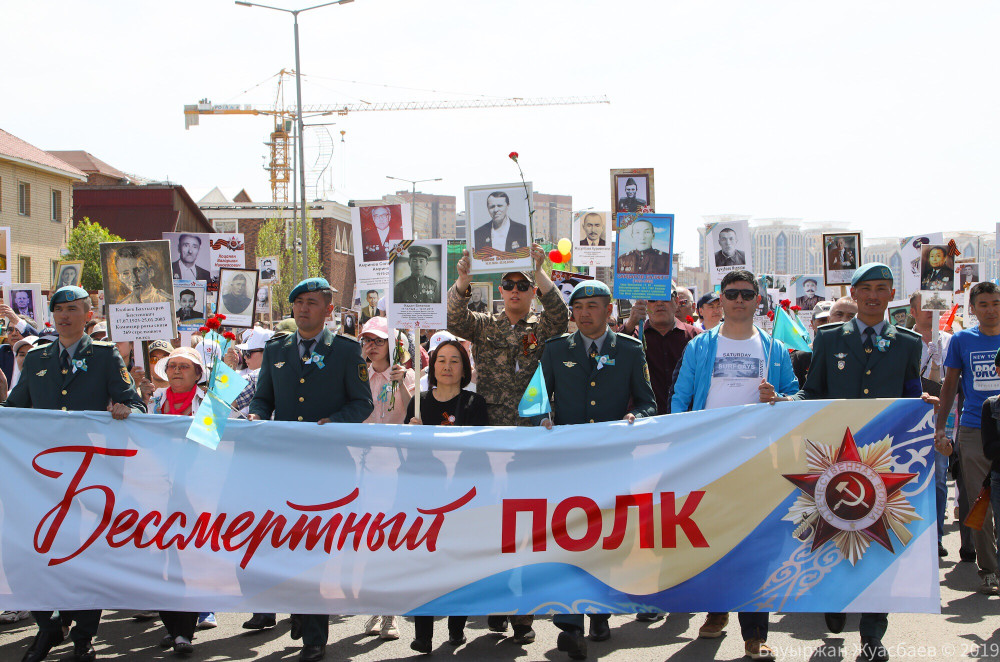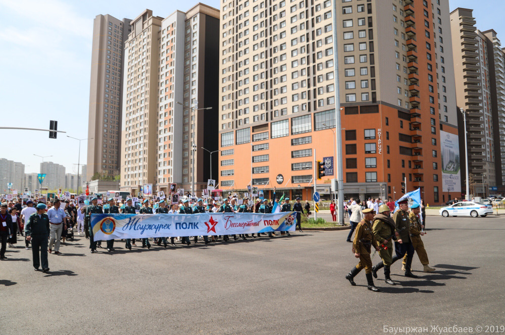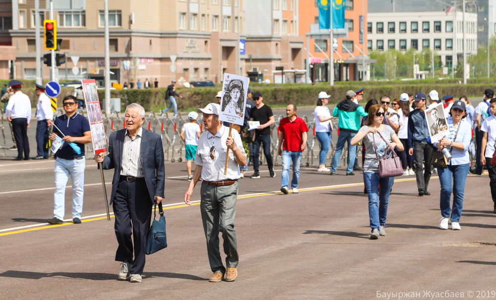 По данным организаторов, шествие "Жаужүрек полк" (Бессмертный полк) проходит в столице ежегодно с 2015 года. Потомки участников Великой Отечественной войны собираются вместе 9 мая, чтобы отдать дань уважения казахстанцам, погибшим на полях боевых сражений, отстоявших победу над фашизмом.
