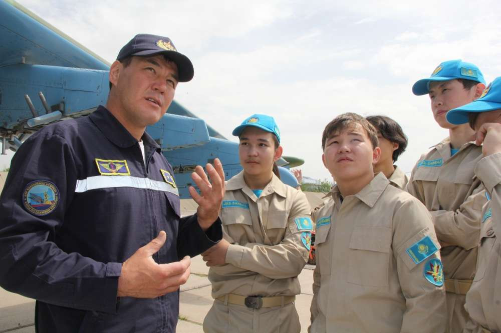 Гидом у школьников стал заместитель командира авиабазы подполковник Азамат Нурахметов. Экскурсия началась с инструктажа, как вести себя в расположении части.