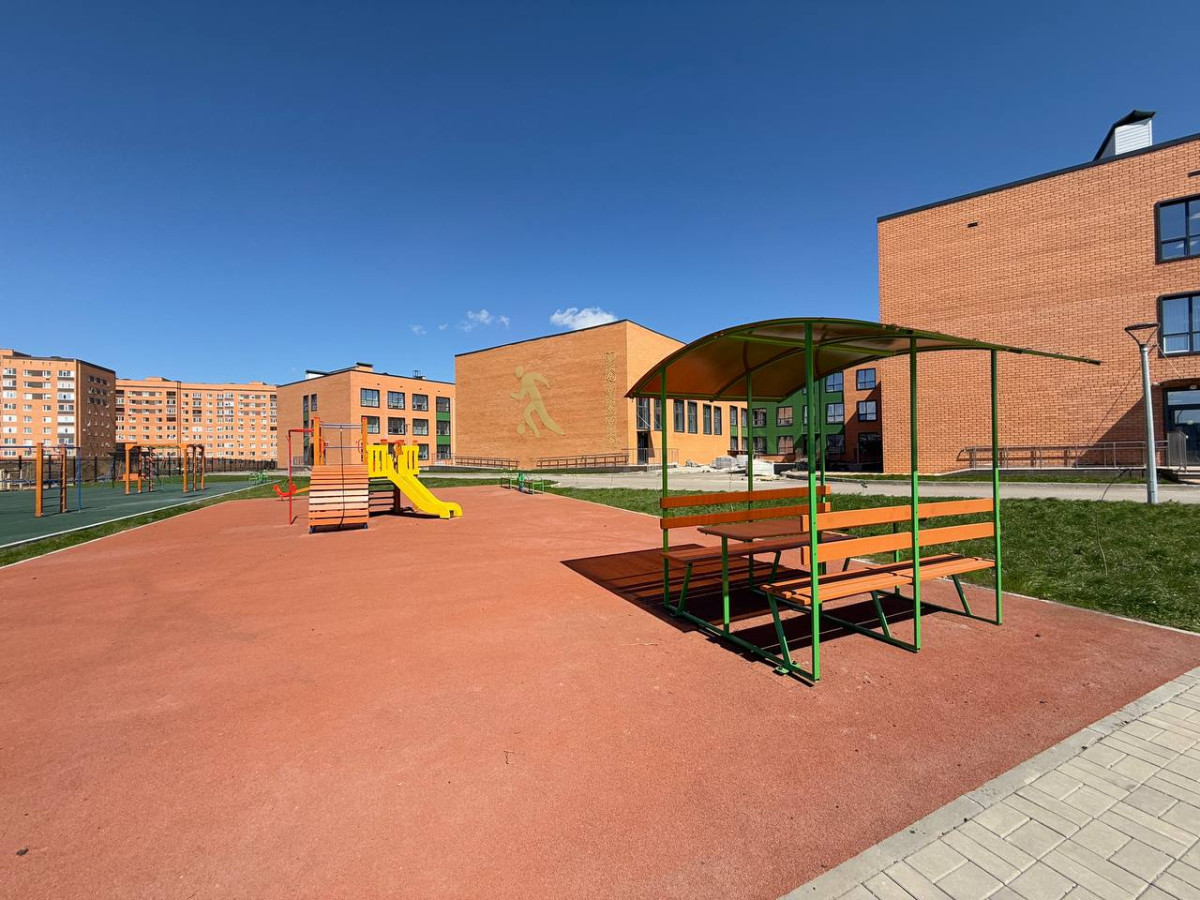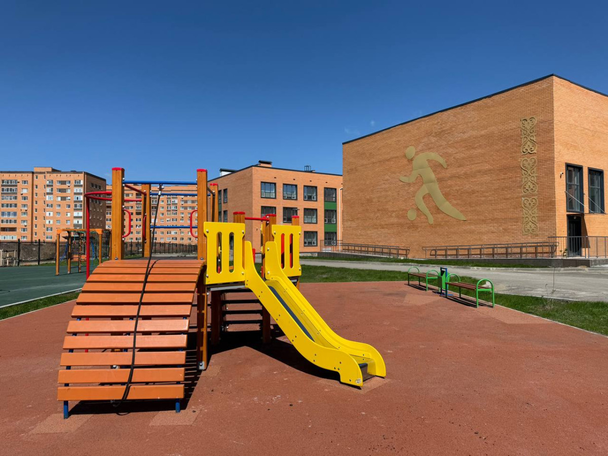 Все комфортные школы в Костанайской области построены в едином стиле, из нового красного кирпича с большой пришкольной территорией, на которой расположены детские качели, спортивные площадки.