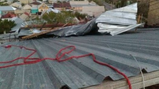 "24.04. в 19-10 городе Тараз, в результате сильного ветра (порывы 25 м/с) на площади 30 кв.м. произошёл срыв кровли с пятиэтажного жилого дома по ул.Сулейманова №20 (общая площадь дома 1000 кв.м.)", - сообщили в пресс-службе.